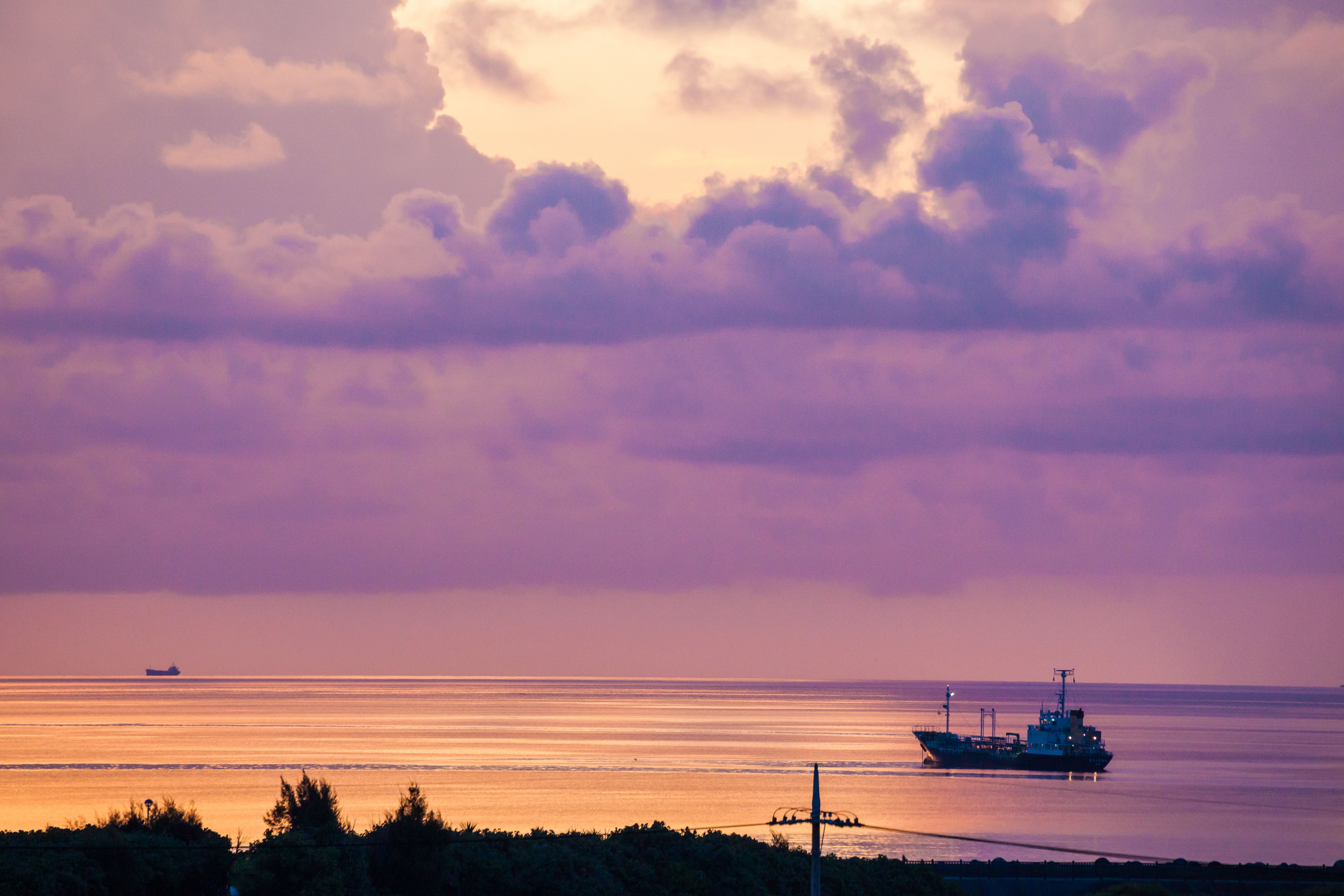 早朝、東海岸の美しい朝焼けと、海に浮かんだ2つの船と雲の様子に目を奪われてシャッターを切りました。ゆっくりと沖へ出ていくような船を見ていると、毎朝どこか穏やかな気持ちになります。