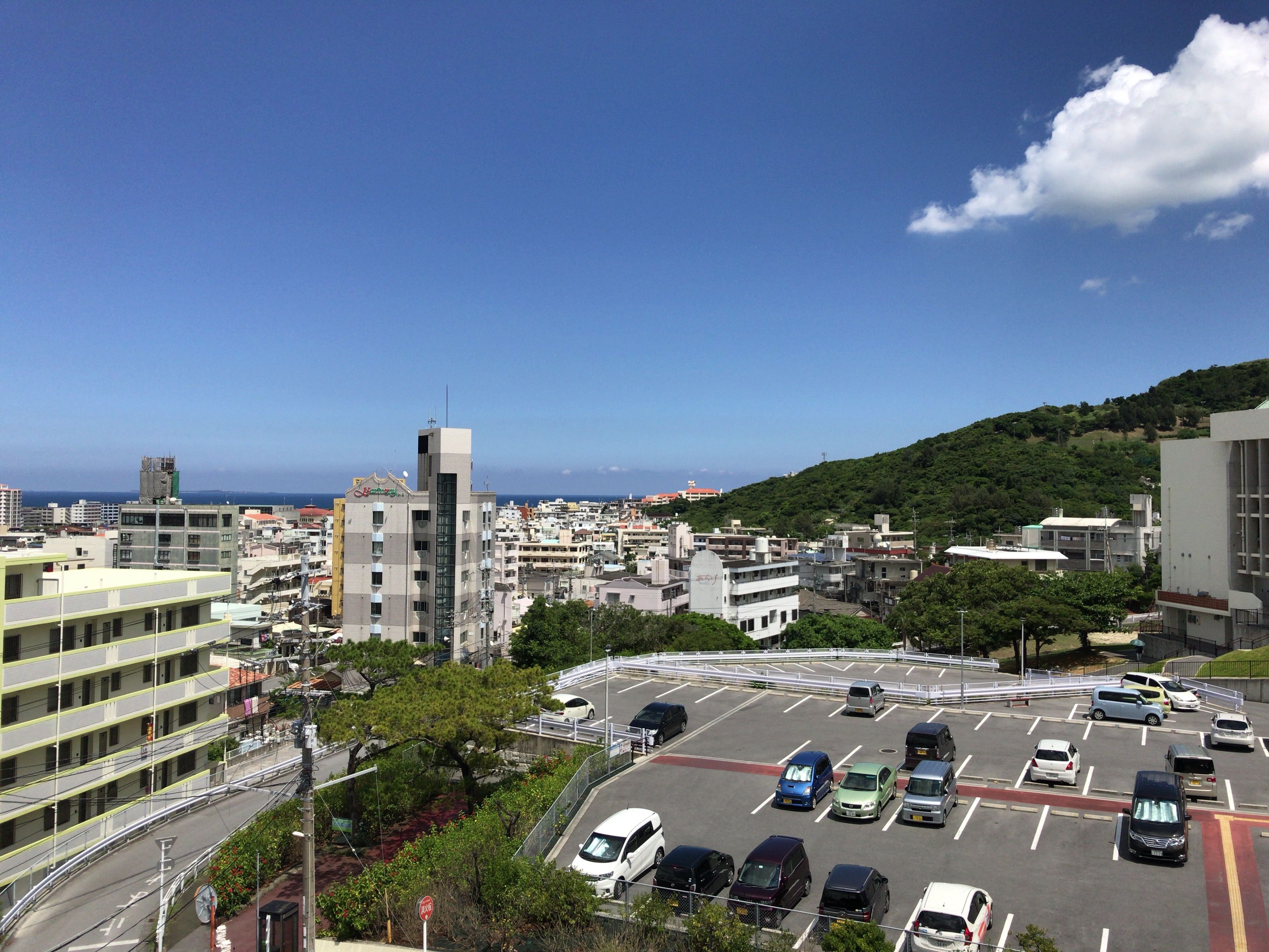 夏の澄み渡る青空と深い群青色の海に与那原町の街並みがとても綺麗だったので、思わすシャッターを切りました。いつも見慣れている街並みを高いところから見渡すと、青と緑に囲まれた自然豊かな街並みを見ることができます。