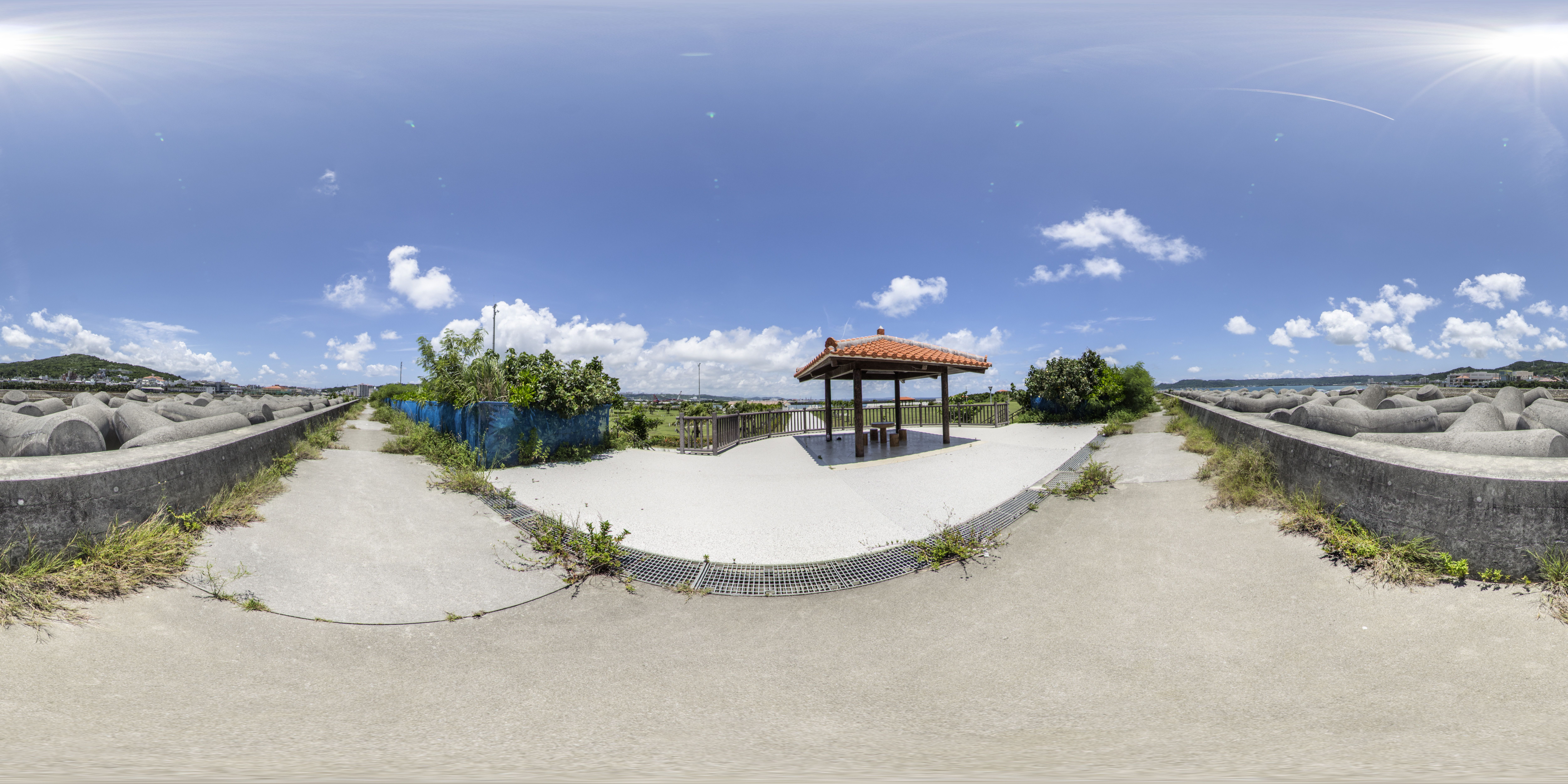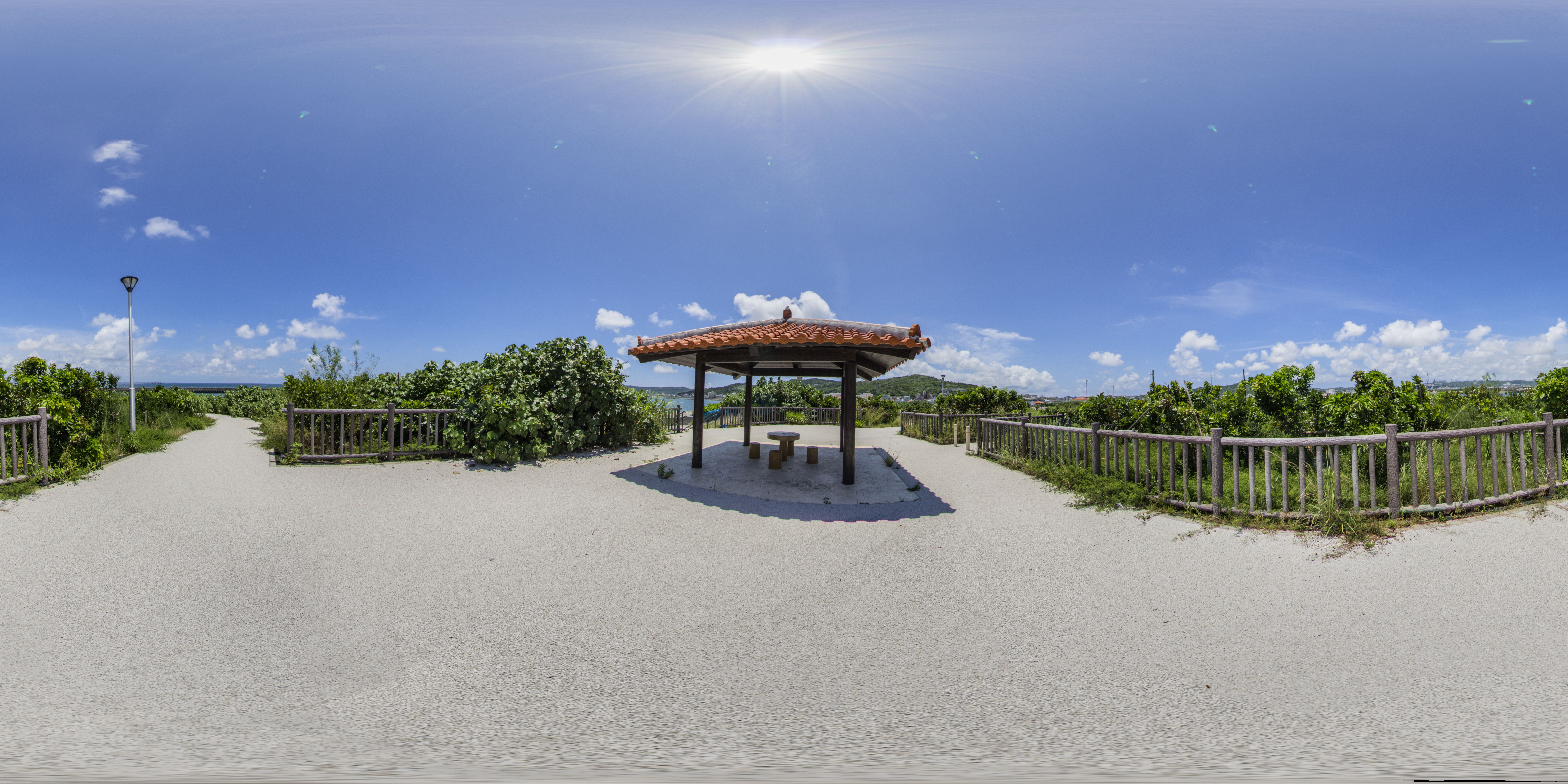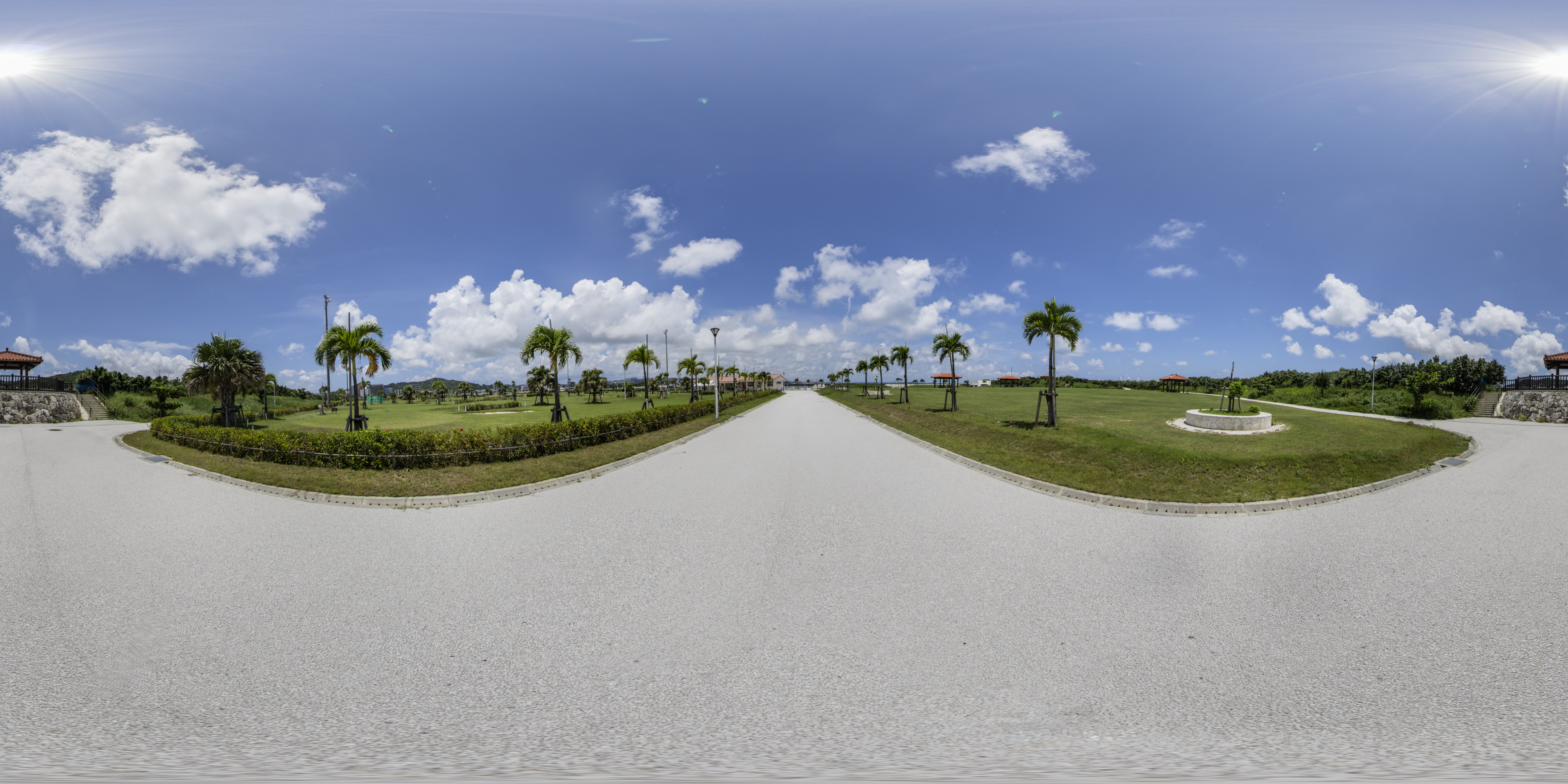 海に囲まれている広い芝生の公園で与那原パークゴルフ場が併設されています。(equirectangular形式の360度パノラマ画像を提供しています。)