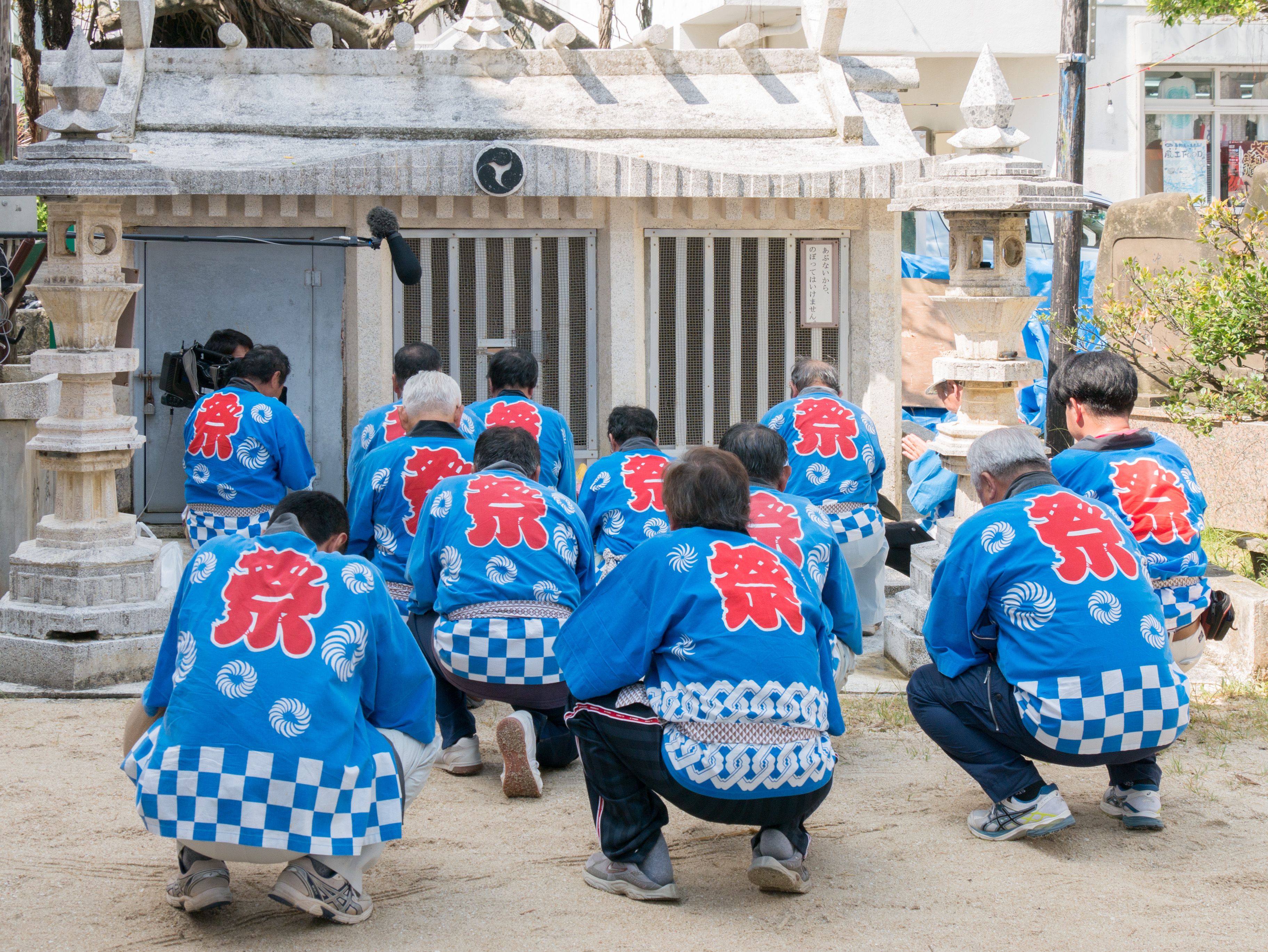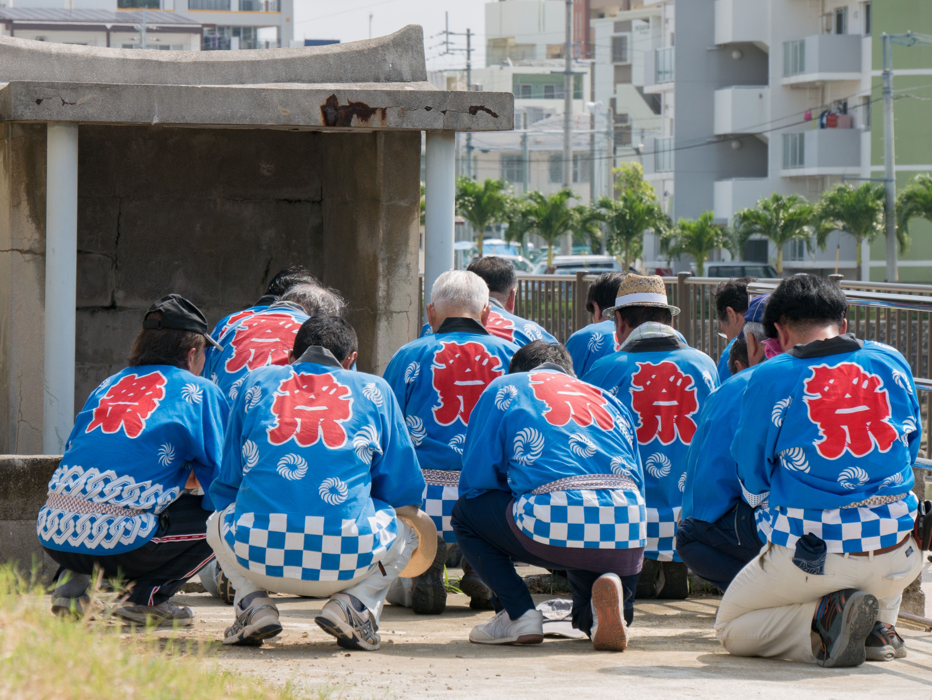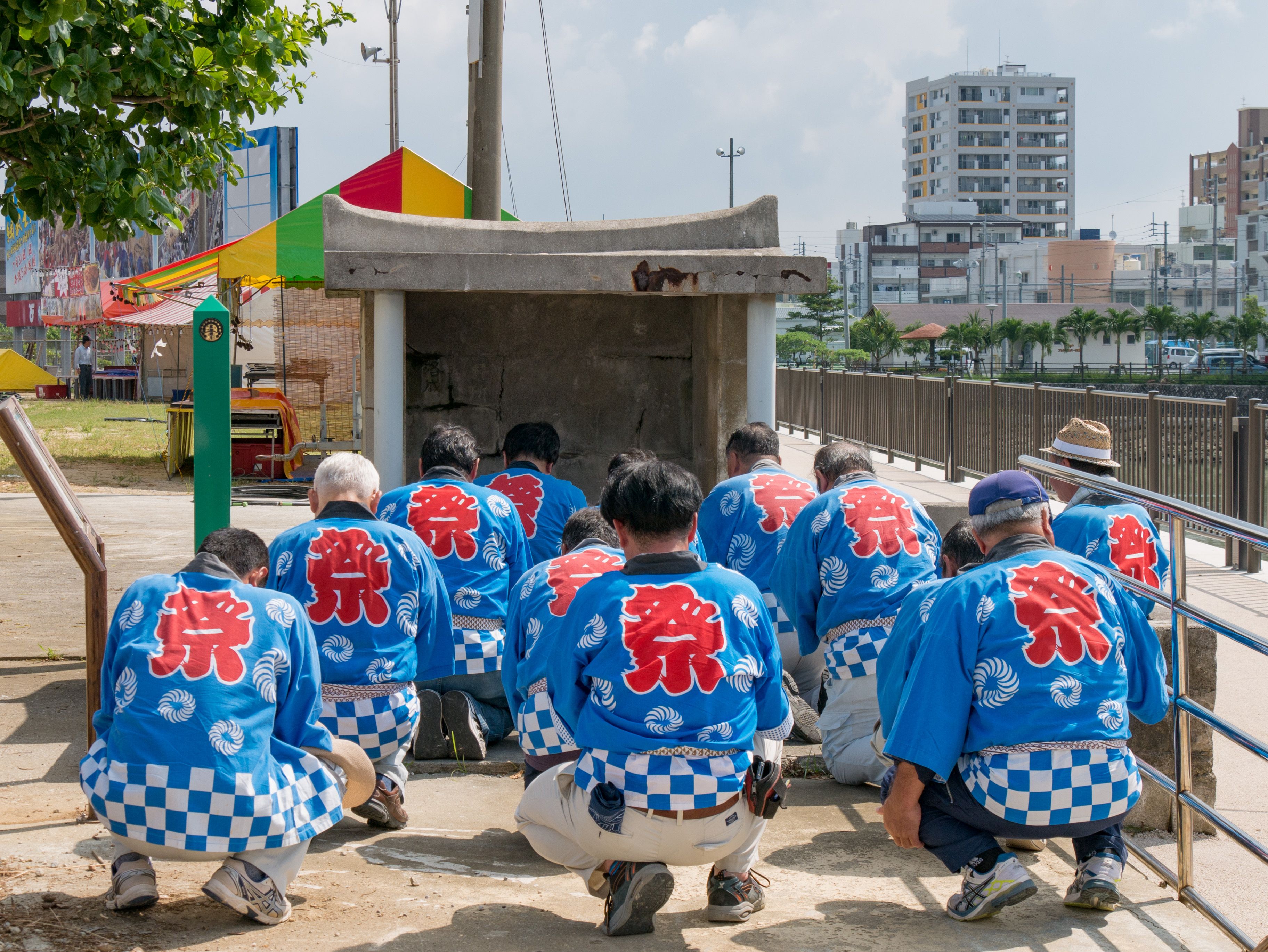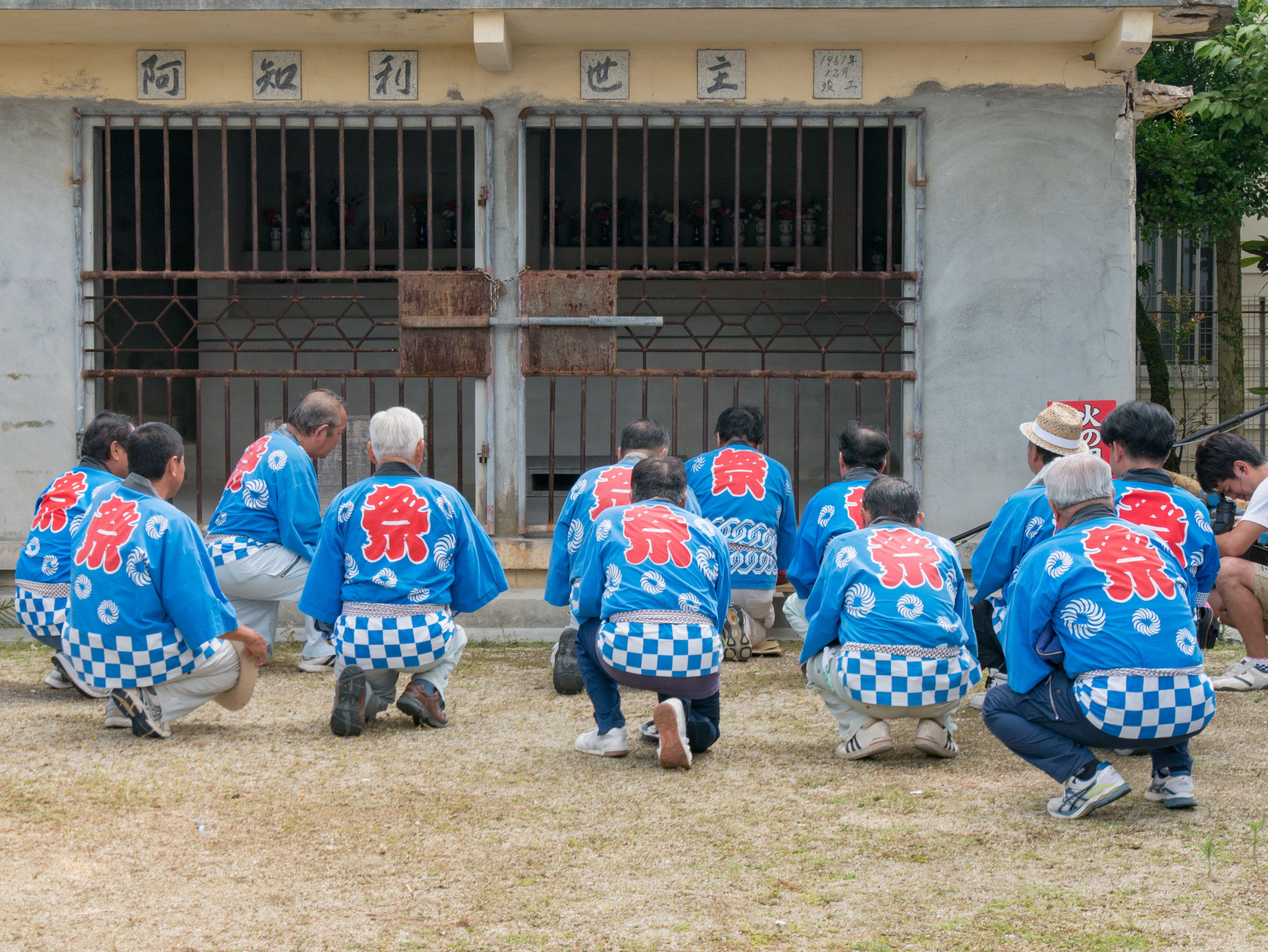 旧暦の6月26日に5ヶ所の拝所を拝み、日延べの報告と綱曳の成功のお祈りします。5ヶ所の拝所:東名大王(アガリナウフス)、宗之増(ソウヌマシ)、阿知利世主(アチリユウヌシ)、御殿山(ウドゥンヤマ)、親川(エーガー)