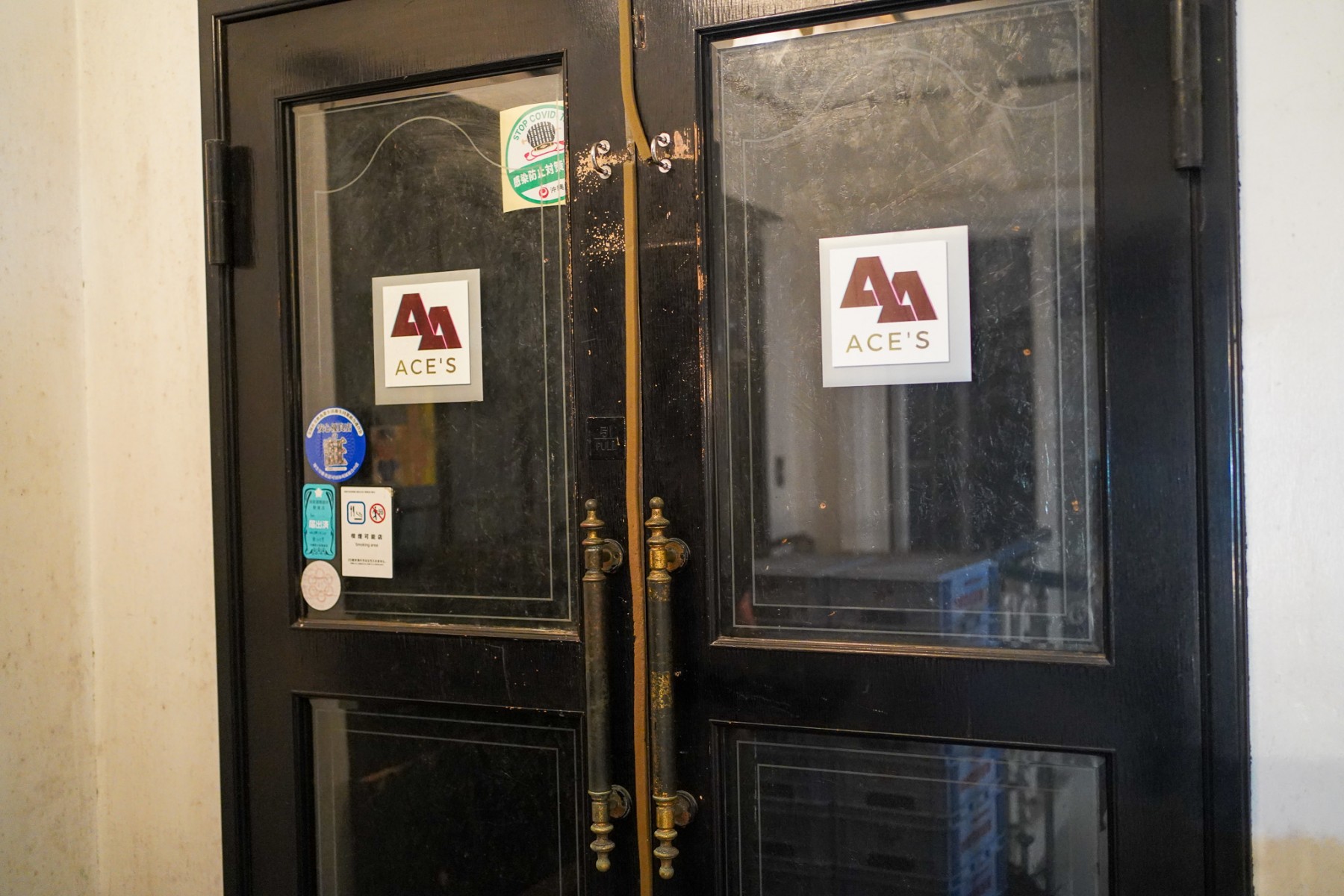 夜の街に灯りがともるビルの一角にあるBAR ACE'S(エーシーズ)