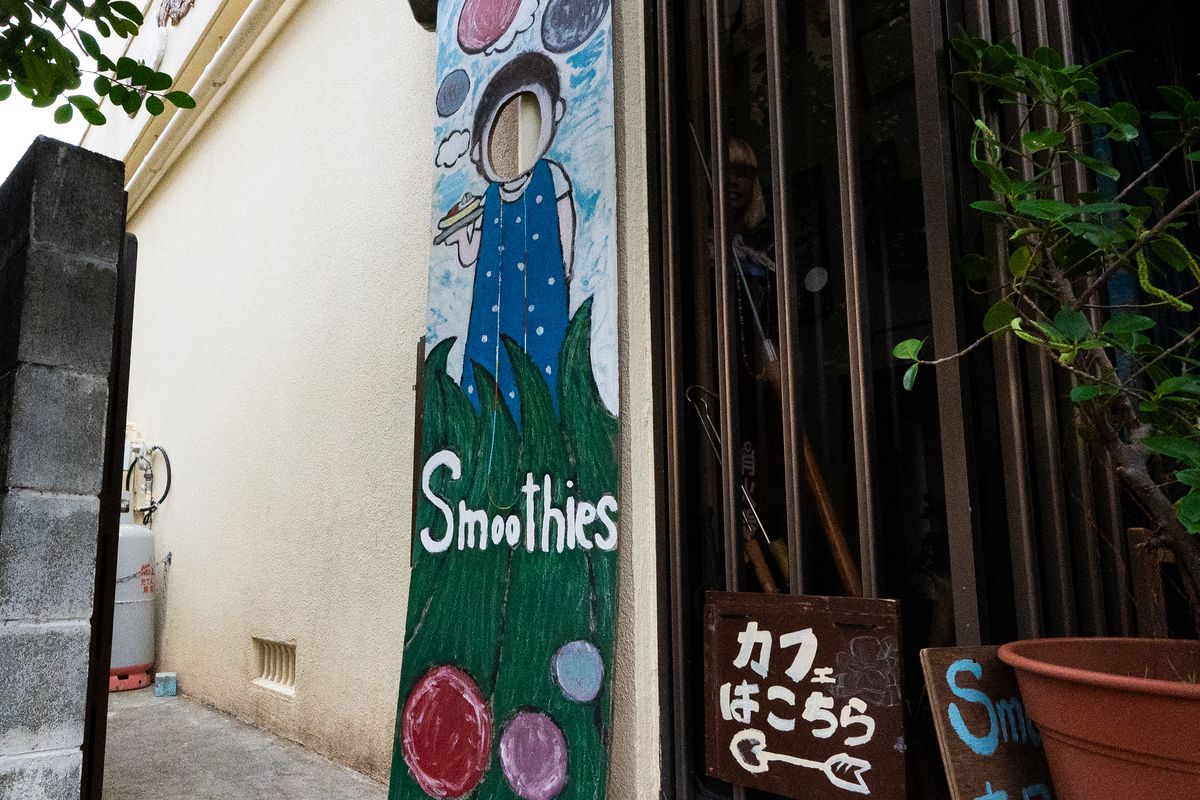 与那原町の住宅街に佇むCafe Smoothiesさん。
