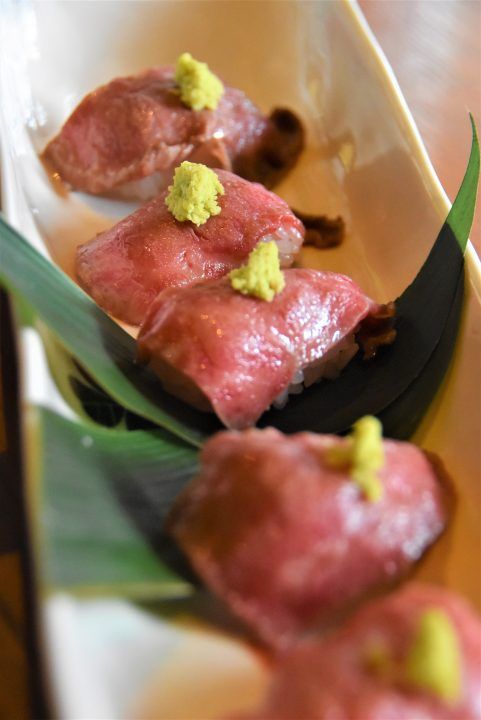 口に入れた瞬間「ぎゅう~」っとうまみが広がる「山城牛の炙り握り」。一ヶ月前から注文しないと手にはいらない貴重な美味しさを、ぜひ味わってみて。