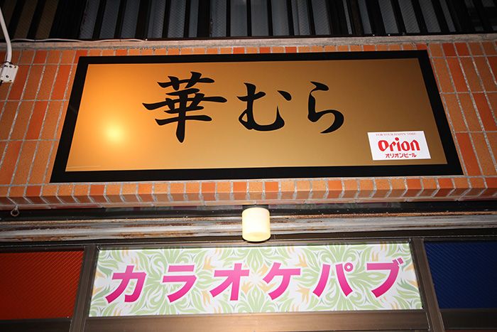 沖縄らしい雰囲気たっぷりのカラオケパブ「華むら」。座敷席もあって、地元客の宴会でも大人気。楽しくワイワイ楽しみたい人、一度足を運んでみて。