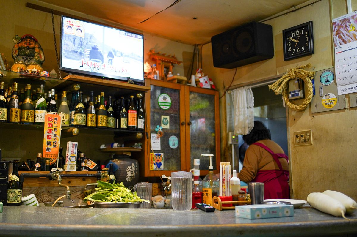 30年以上前のオープン以来、「八重子ママ」「母ちゃん」と呼ばれ親しまれる八重子さんが一人で切り盛りしています。