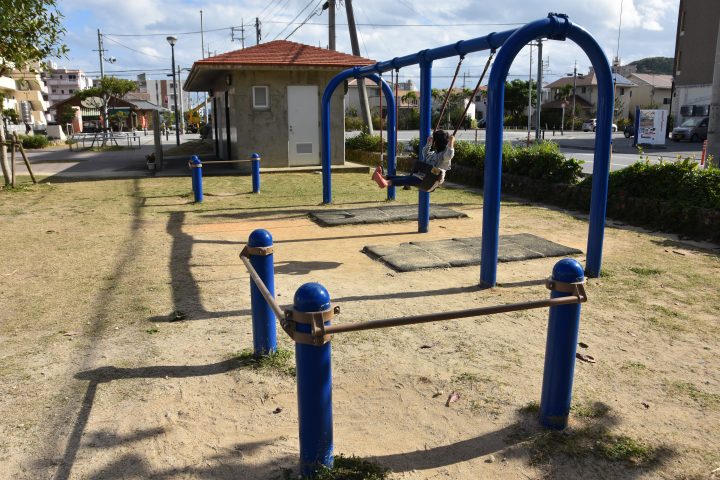 大きなシーサーが見守る、東浜のファミリーたちの憩いの公園。