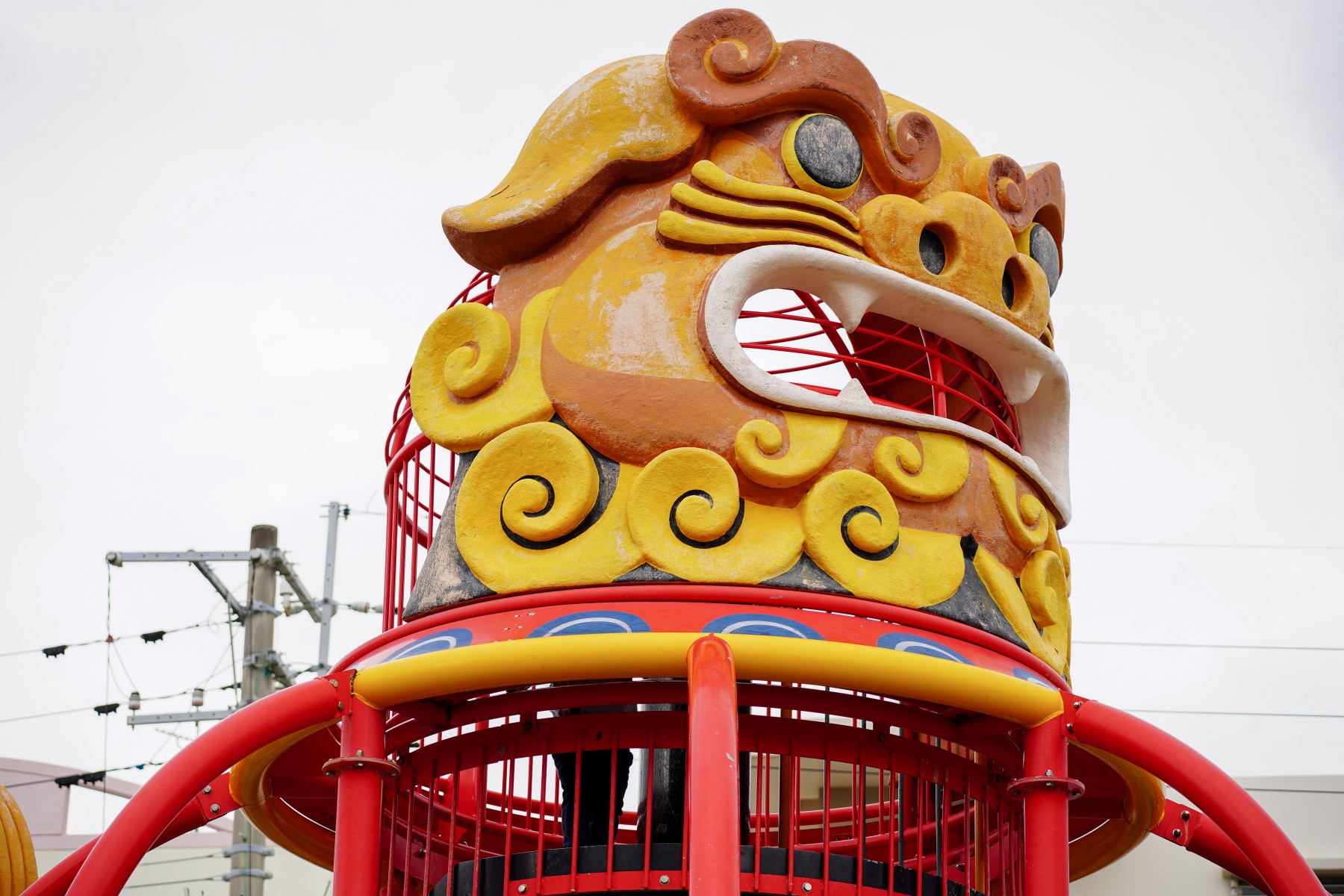沖縄の家々の屋根や門に置かれることが多いシーサーですが、ここでは公園の主役として存在感を放っています。表情豊かなシーサーが公園を見守る姿は、沖縄らしい風景のひとつ。住宅街の中にありながら、どこか南国らしいのびやかな空気を感じられる場所です。