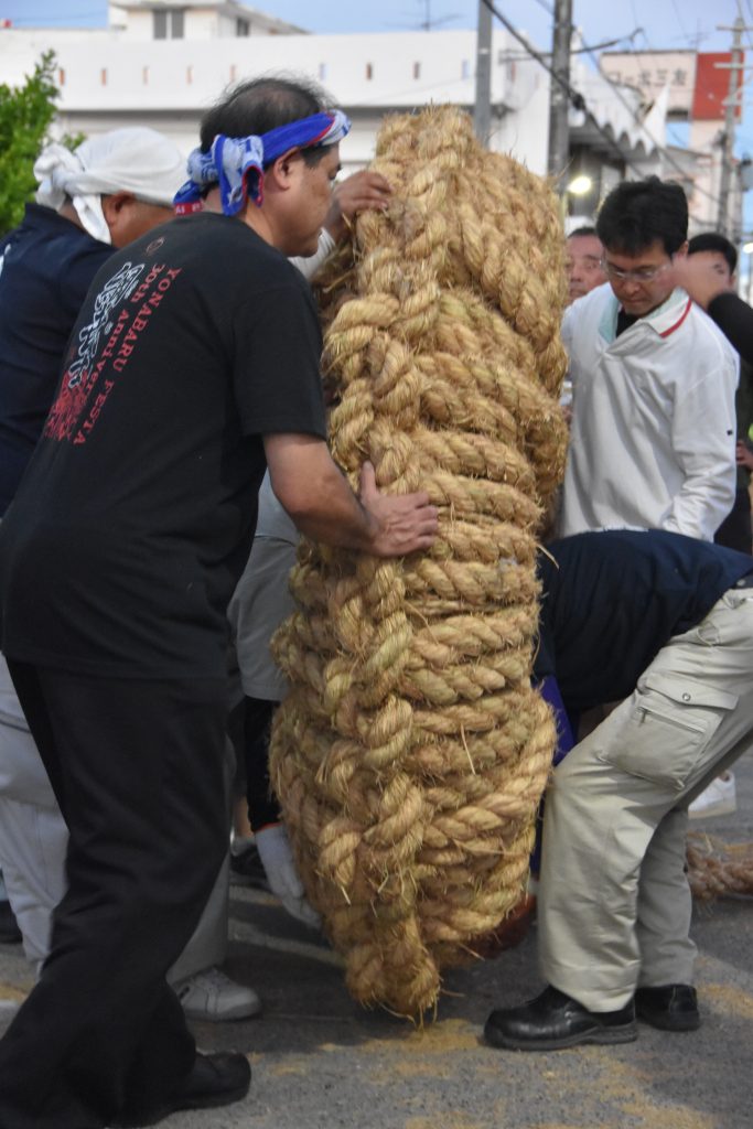 そして、与那原町の中央通りでは・・・「大綱作り!!」