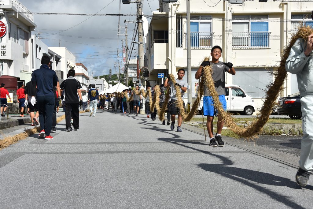 今年は久米島に大綱をもっていくため、中にロープをいれ強化しました。