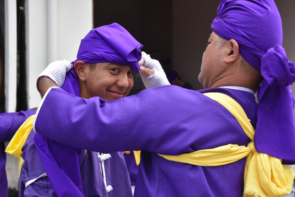 お父さんにサージをまいてもらう息子くん。与那原の大綱曳はDNAで脈々と引き継がれていっています。