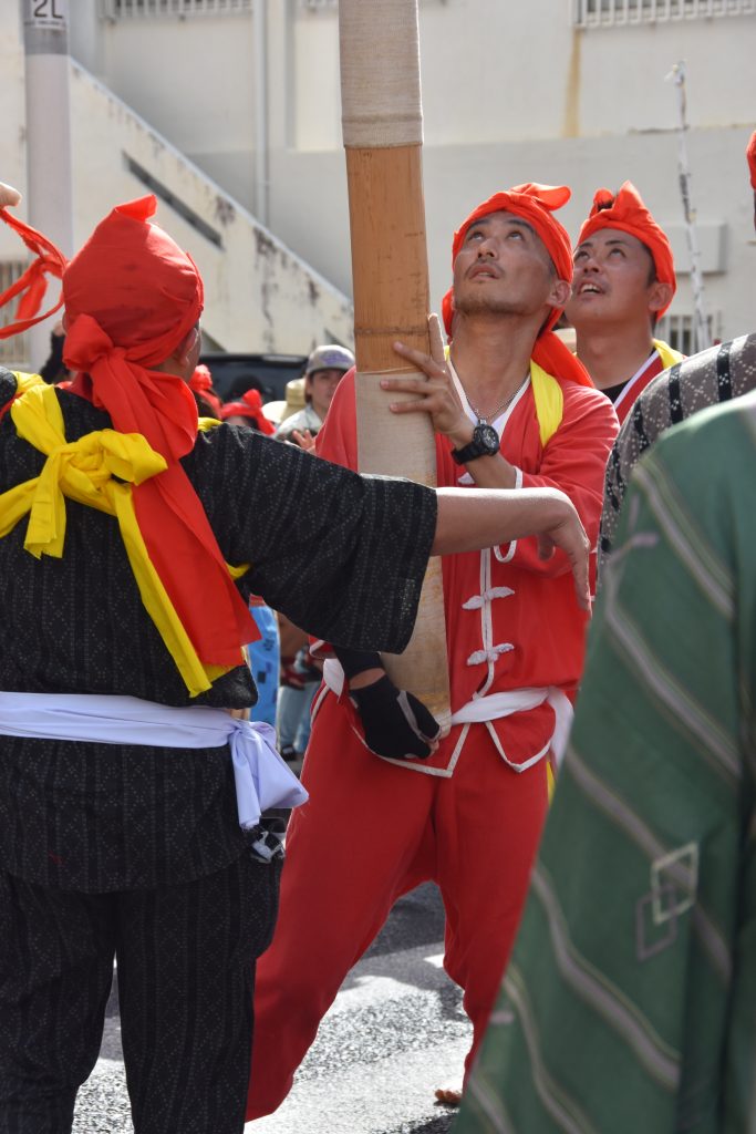 後ろからするりと持ち手を差し込んでいれかわるという、早業です。那覇や糸満とは違う「与那原持ち」も特徴の一つです。
