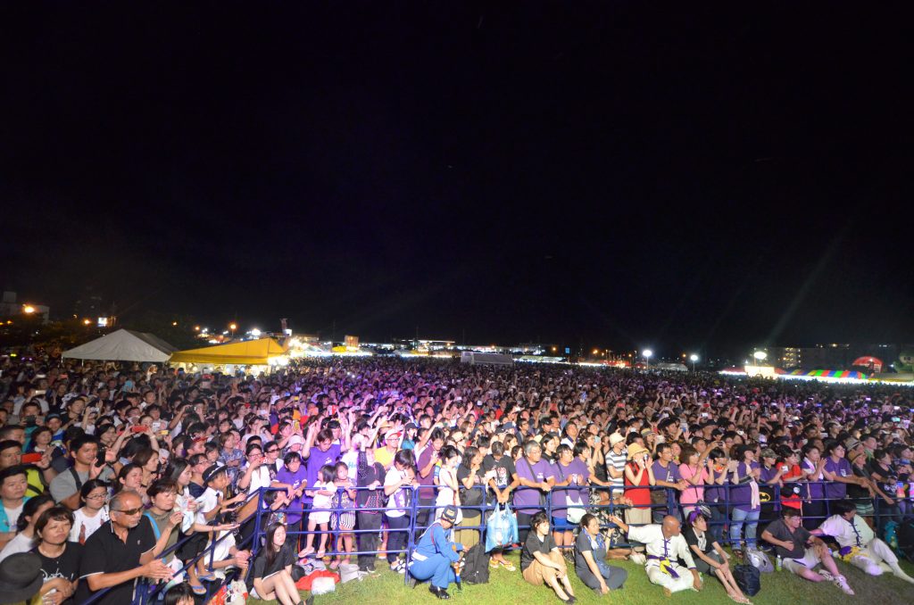 大綱曳のあとは、場所をまつり会場に移動し、「きいやま商店」と「かりゆし58」のライブ~~(^^♪