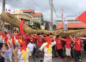 与那原大綱曳は御殿山(うどぅんやま)青少年広場で行われ、4分52秒という粘りに粘った白熱した戦いとなりました。