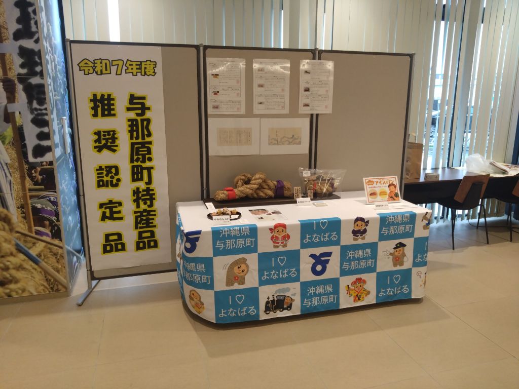 現在、与那原町役場ロビーにて「令和7年度 与那原町特産品認定商品展示会」を開催しています。