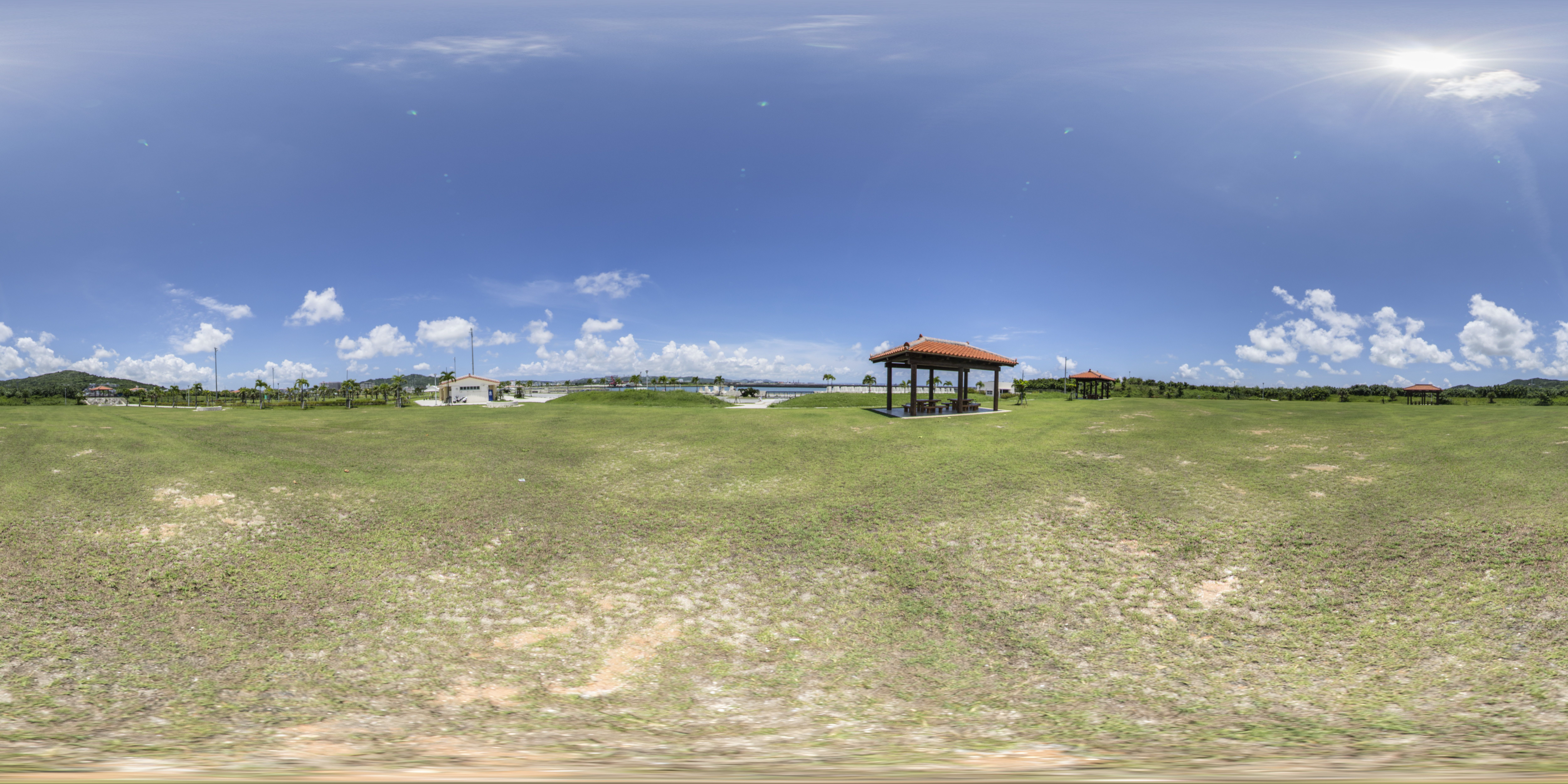 海に囲まれている広い芝生の公園で与那原パークゴルフ場が併設されています。(equirectangular形式の360度パノラマ画像を提供しています。)
