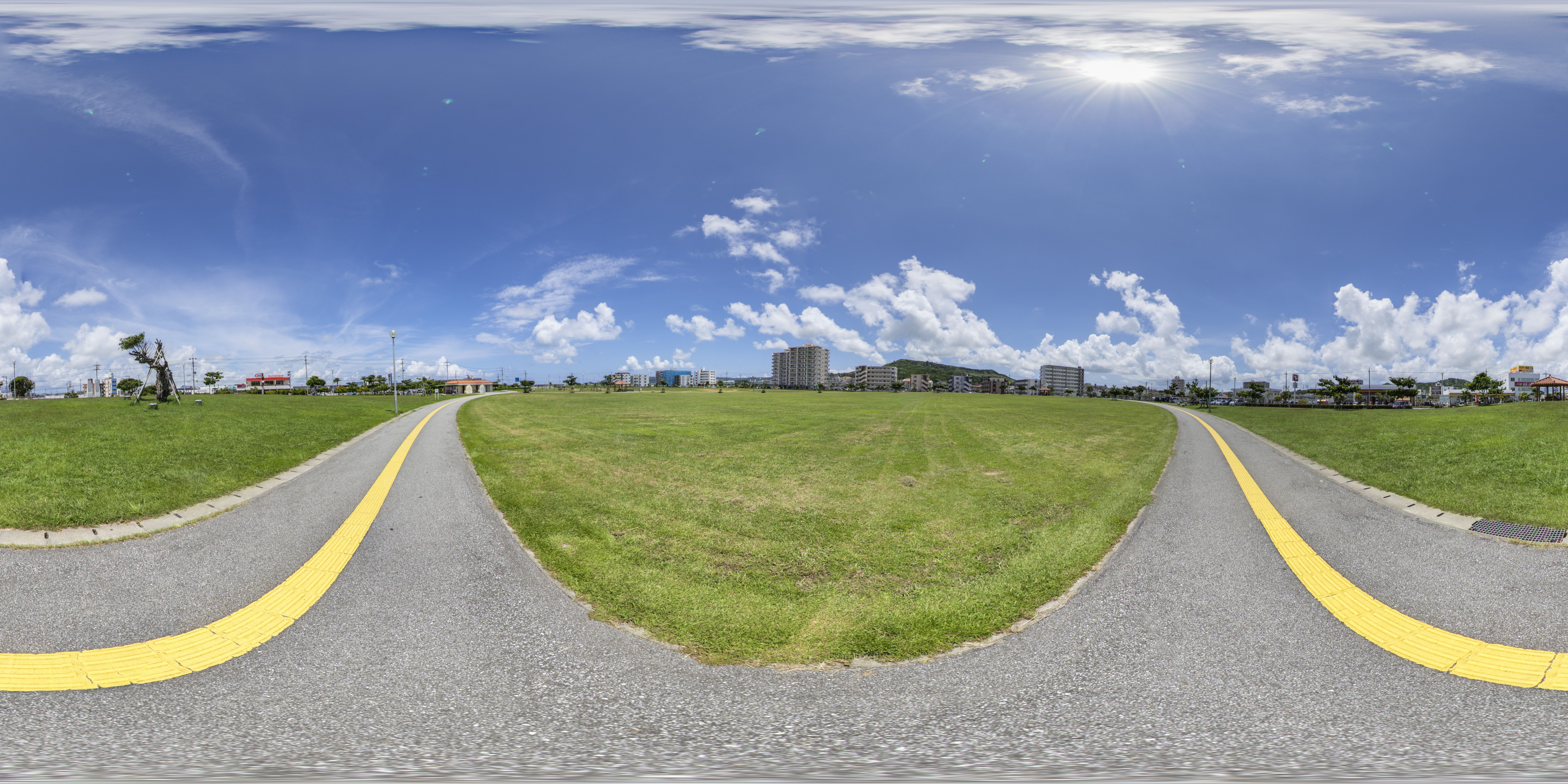 公園内を1周するウォーキングコースや広々とした芝生広場、バスケットコート、健康器具等が備わっている大きな公園です。(equirectangular形式の360度パノラマ画像を提供しています。)