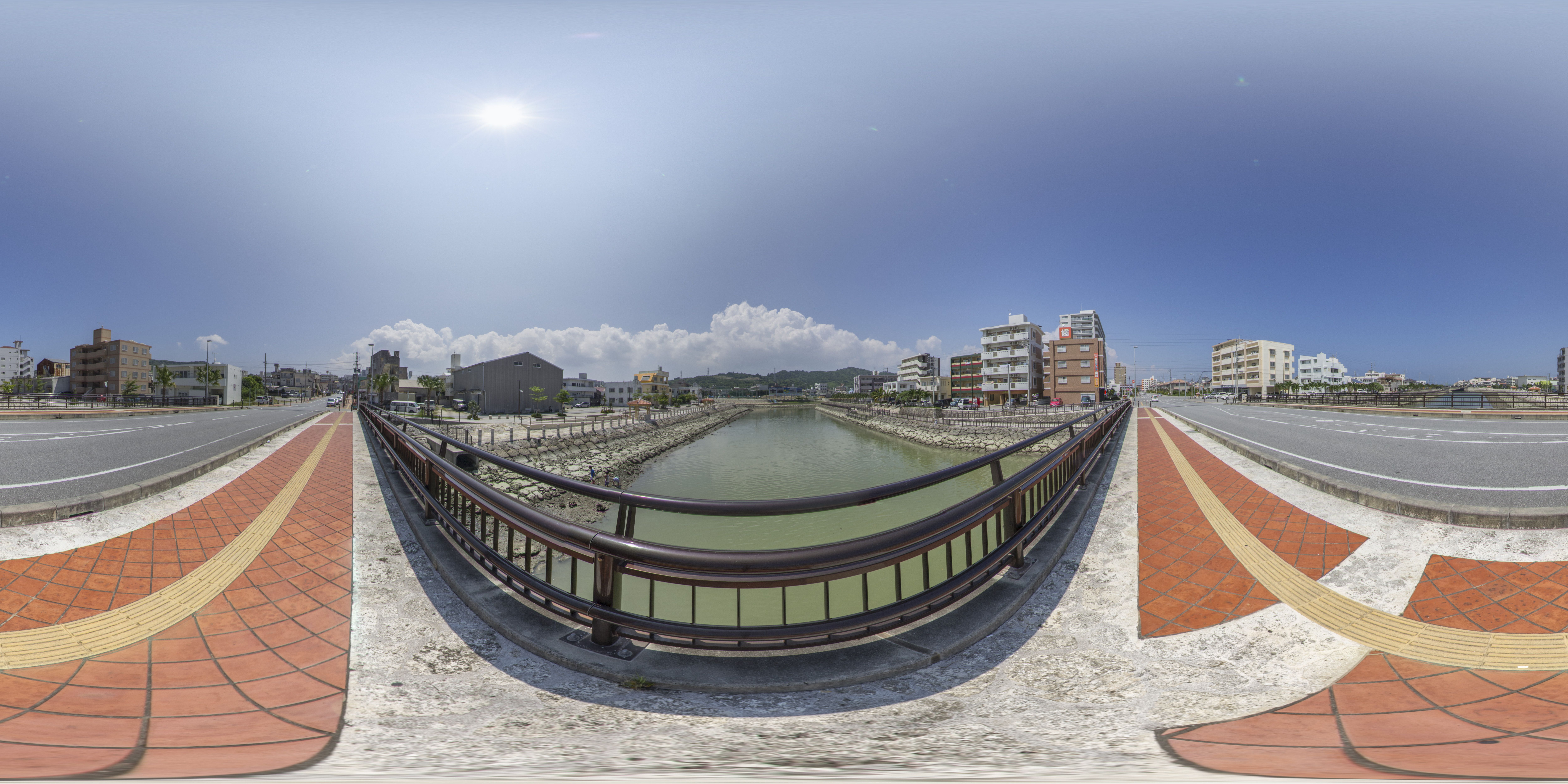 与那原町の「えびす通り」から東浜地区につながる橋です。(equirectangular形式の360度パノラマ画像を提供しています。)