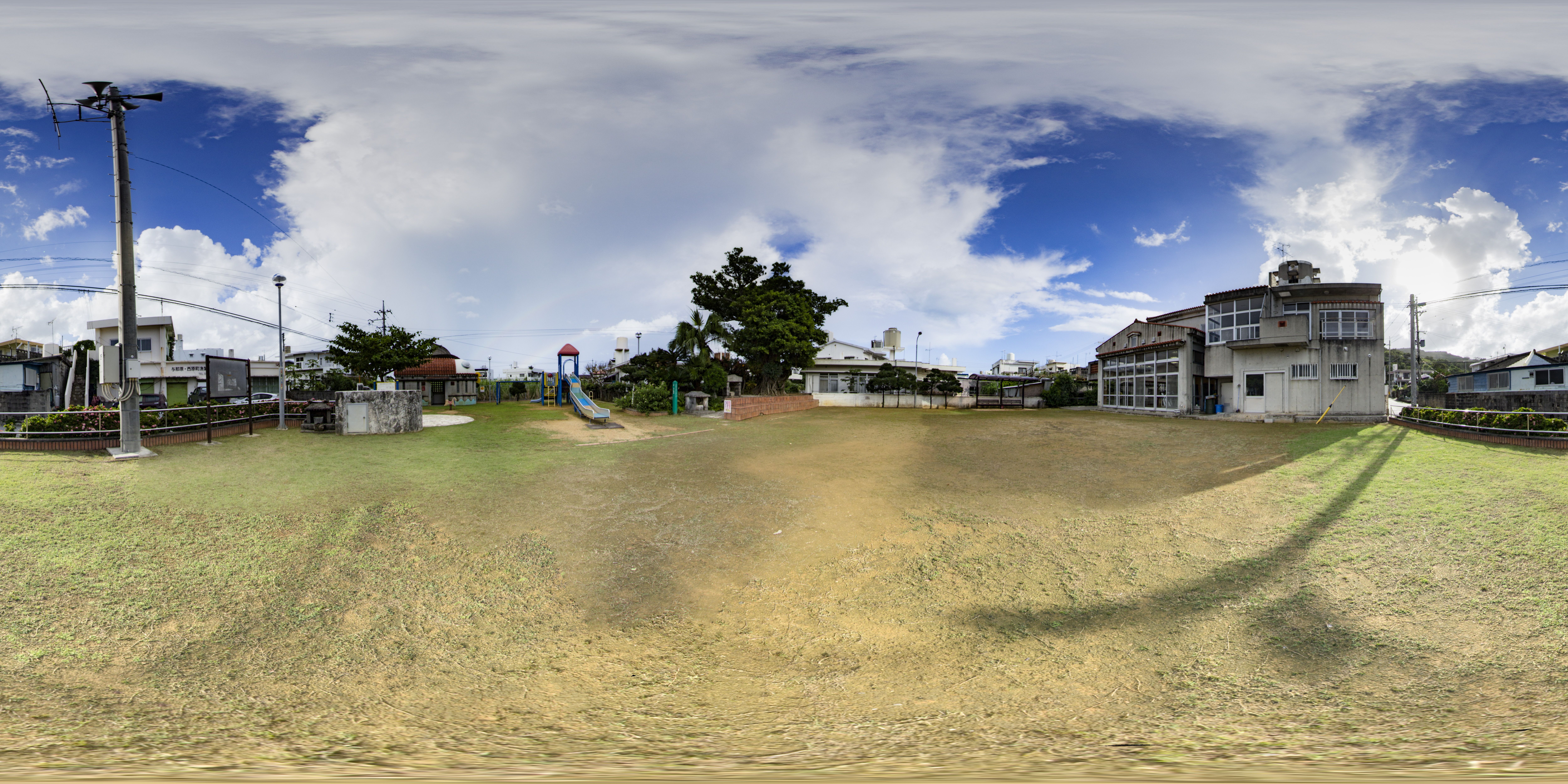 当添漁港近くにある公園です。お魚を形したトイレがユニークで印象的です。(equirectangular形式の360度パノラマ画像を提供しています。)