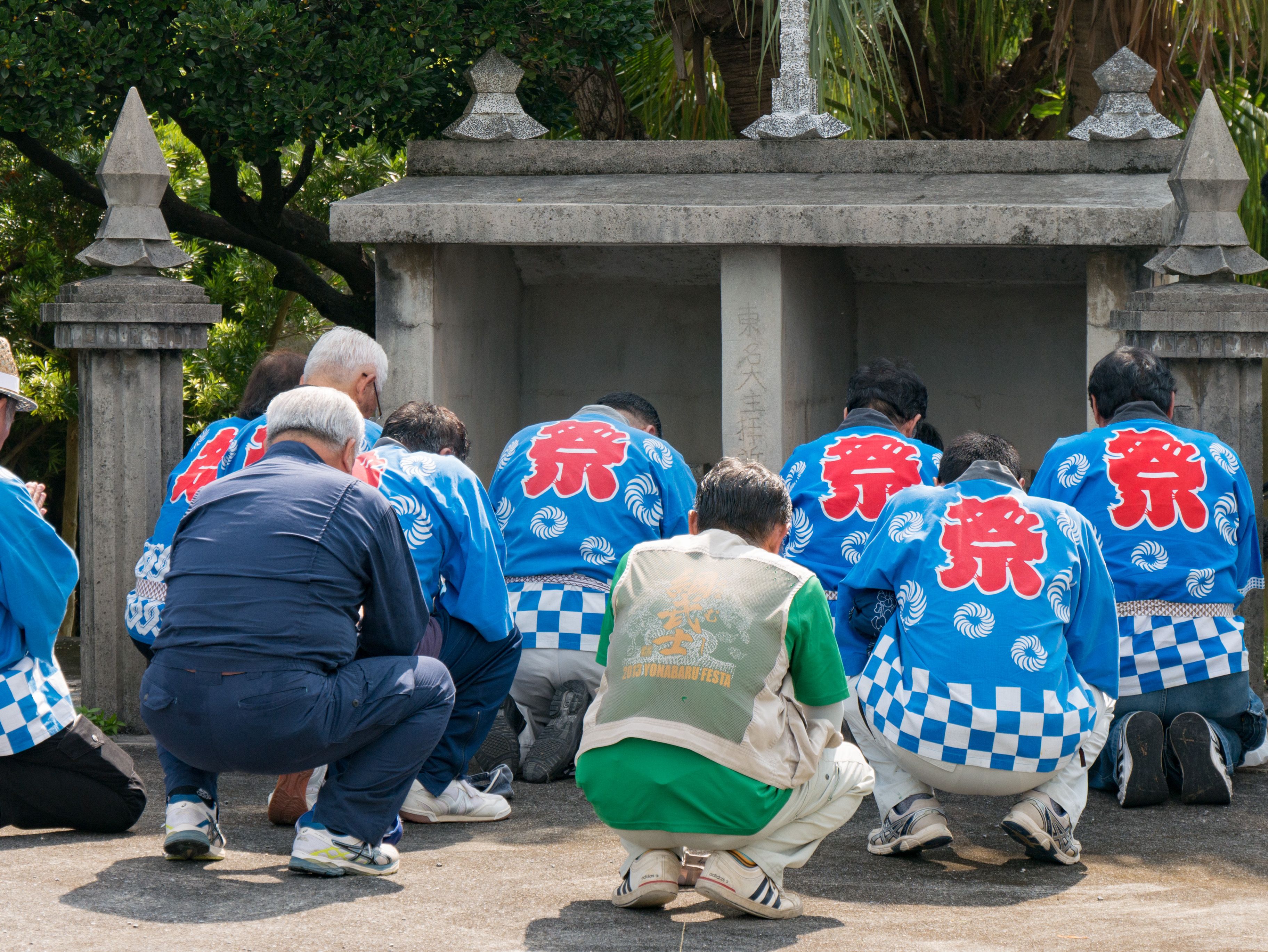 旧暦の6月26日に5ヶ所の拝所を拝み、日延べの報告と綱曳の成功のお祈りします。5ヶ所の拝所:東名大王(アガリナウフス)、宗之増(ソウヌマシ)、阿知利世主(アチリユウヌシ)、御殿山(ウドゥンヤマ)、親川(エーガー)