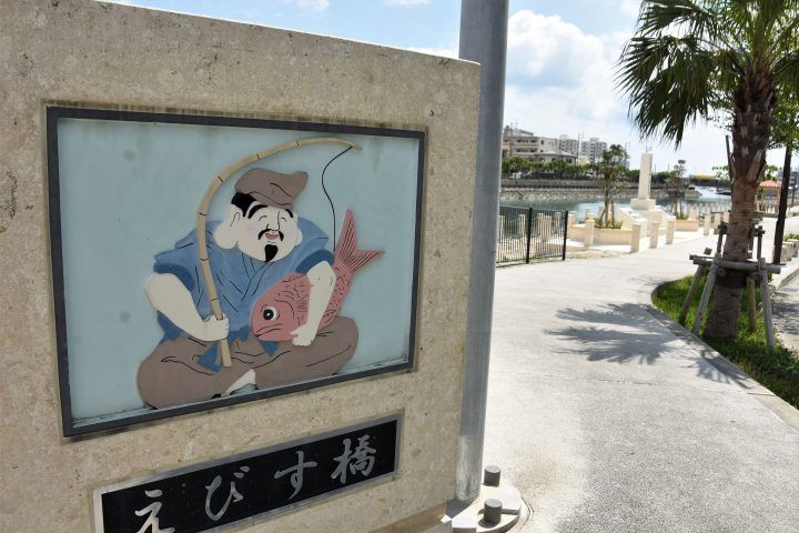 中城湾から伸びる、東浜(あがりはま)の埋め立て地区をぐるりと囲んだ「東浜水路」に、7つの橋が架かっています。中城湾から奥に入って「くじら橋」「東浜橋」「えびす橋」「世持橋(よもち)」「与那古橋」「ゆめなり橋」「ほかけ橋」です。