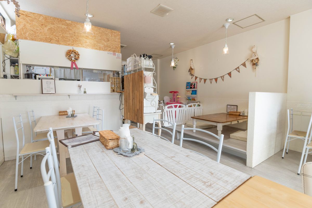 国道331号線沿いにあるCAFE&ZAKKA Reemocoは、忙しい日常から少し離れてホッとひと息つけるカフェ。役場で不登校支援スタッフとして働いてきた店主の上地さんは、困窮するひとり親家庭が多いことや、行き場のない子供たちの居場所を確保するために子ども食堂としてカフェをオープン。木曜日は営業終了後に食事支援を行なっています。白を基調とした優しい雰囲気の店内にはアンティーク調の家具や雑貨が並び、奥にはキッズスペースも。子連れでも気兼ねなく過ごせる空間が広がり「実家感覚で過ごしてほしい」という想いから“お母さんが作る家庭料理”をイメージした、身も心も温まるメニューを提供します。