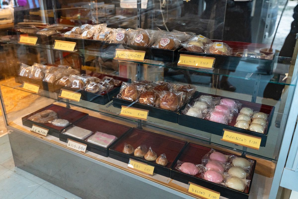 地元の子どもたちに人気の焼きたてパンも評判で、あんパンやメロンパン、うぐいすパンなど種類は豊富。