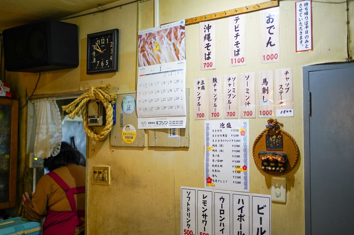 西原町や南風原町、南城市、遠くは糸満市から訪れるお客さんもいるそうです。オリオン通り周辺で一杯楽しんだ後、お酒の締めに立ち寄る人も多く、深夜まで灯りが消えません。