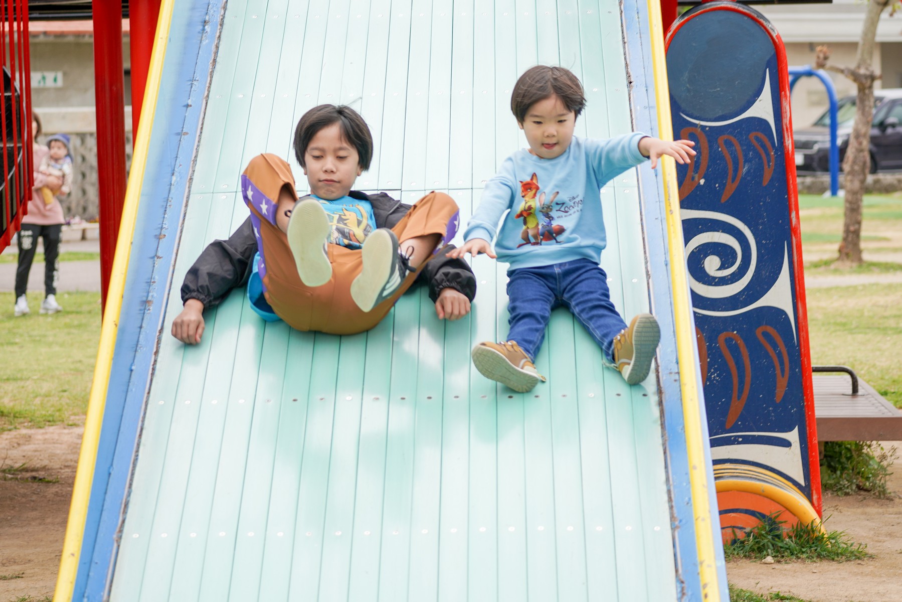 公園内には滑り台やブランコなどの遊具があり、小さな子どもでも遊びやすい環境が整っています。広場スペースもあるため、ボール遊びやかけっこなど、のびのびと体を動かすことができます。昼間は親子連れや保育園児の姿が多く、夕方になると学校帰りの子どもたちが集まるなど、地域の暮らしに溶け込んだ公園です。