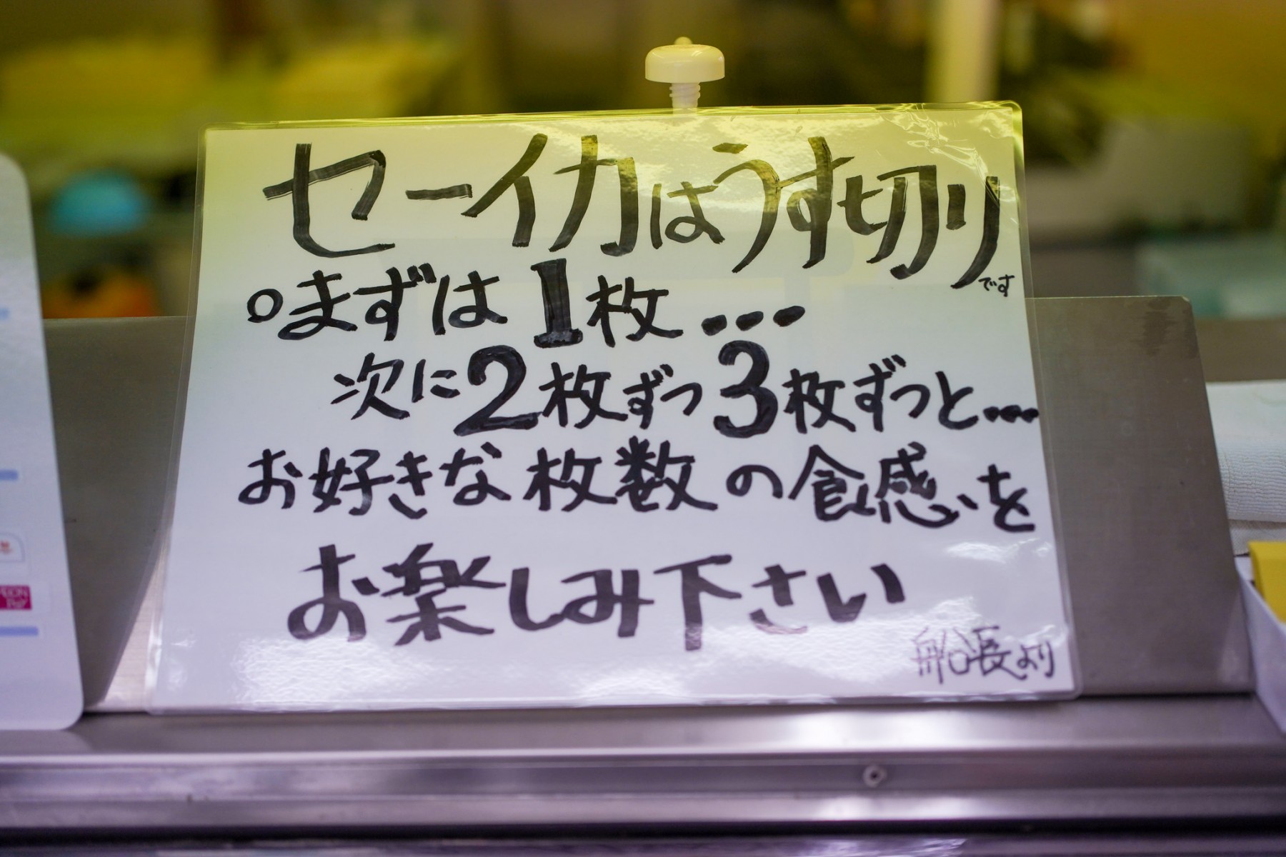 中でもこの店では、通常の厚切りではなく薄切りで提供しているのが特徴です。薄く切ることで、セーイカ本来の甘みややわらかさがより感じられるのだそう。