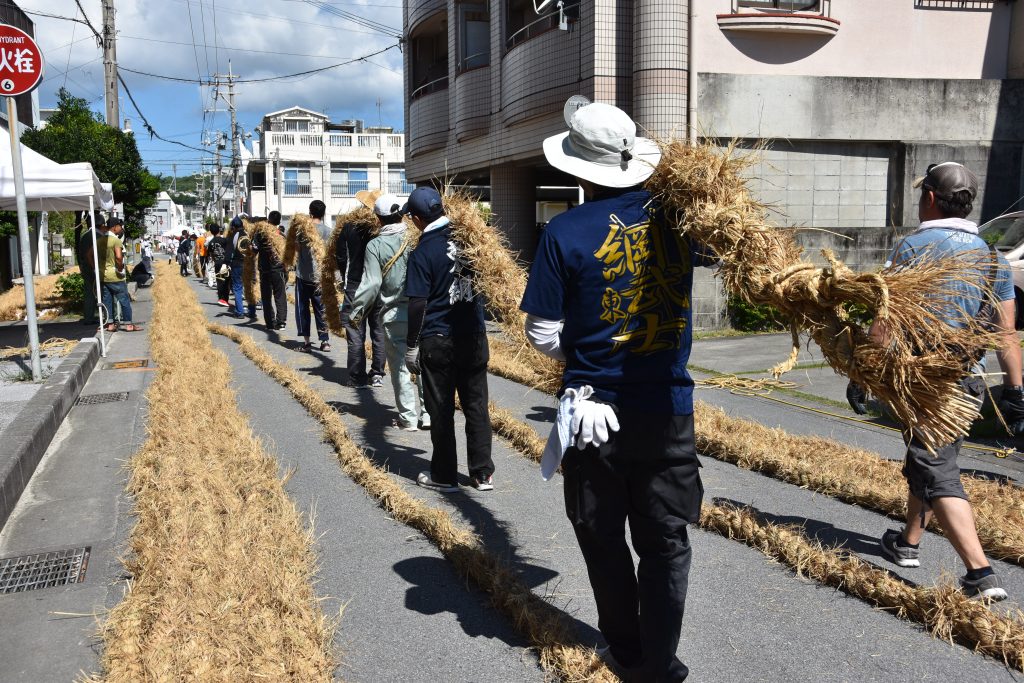 そして、与那原町の中央通りでは・・・「大綱作り!!」