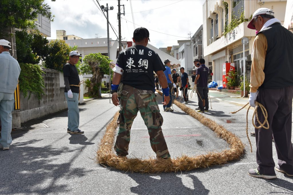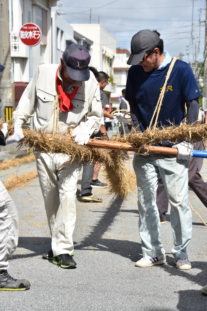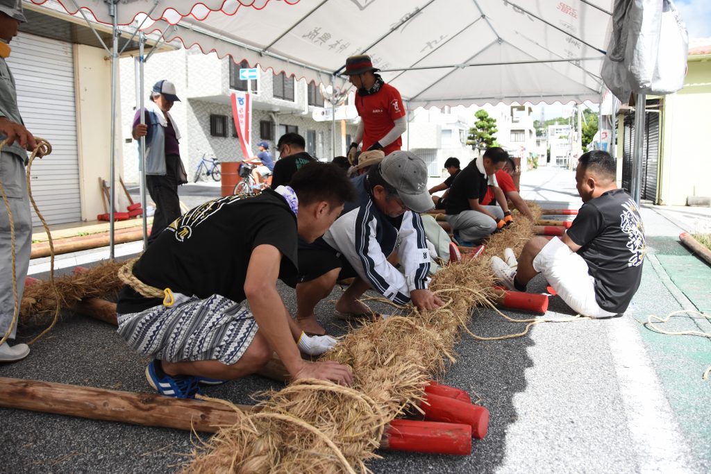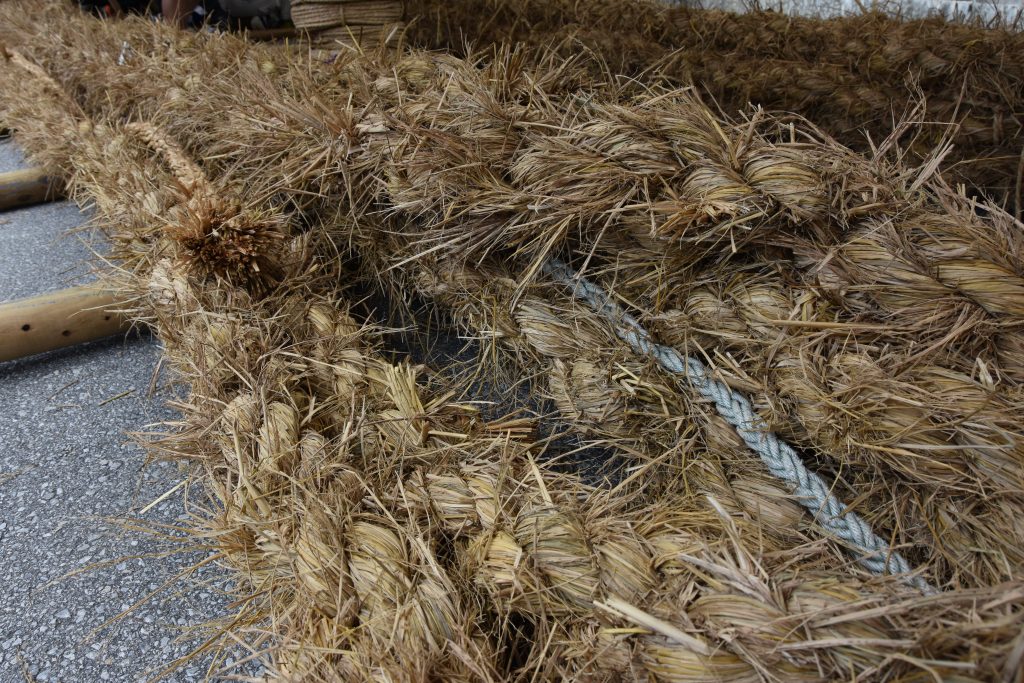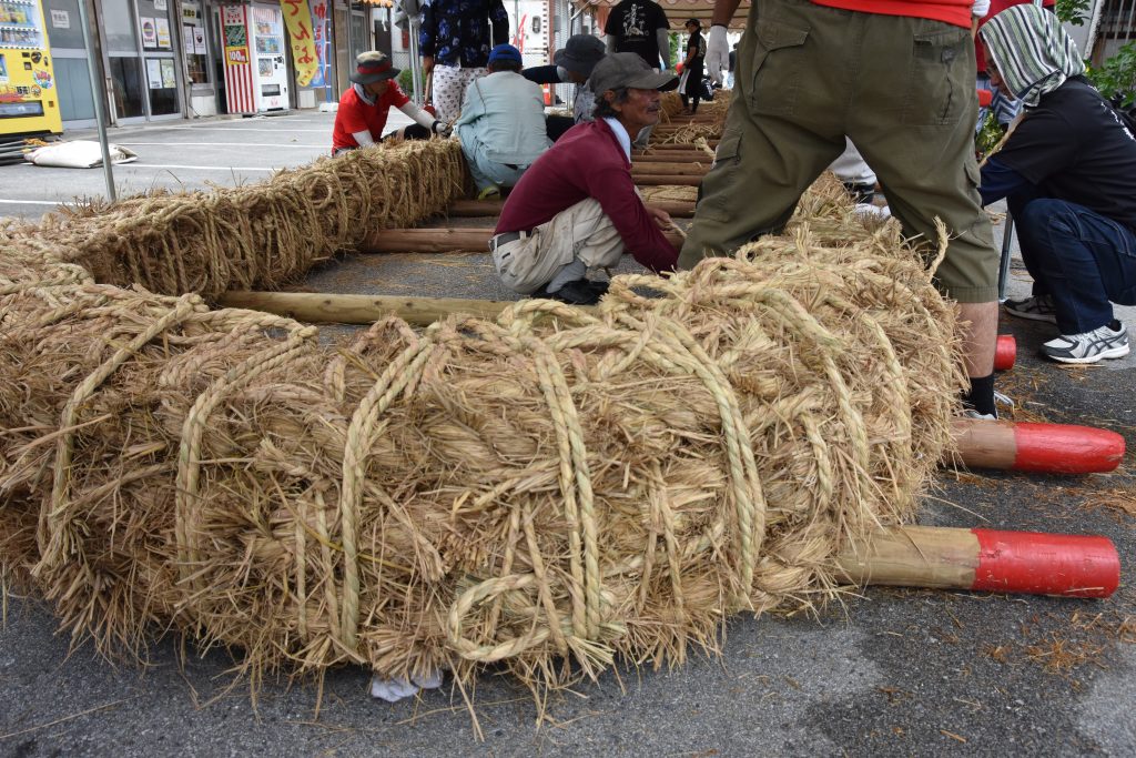 今年は久米島に大綱をもっていくため、中にロープをいれ強化しました。