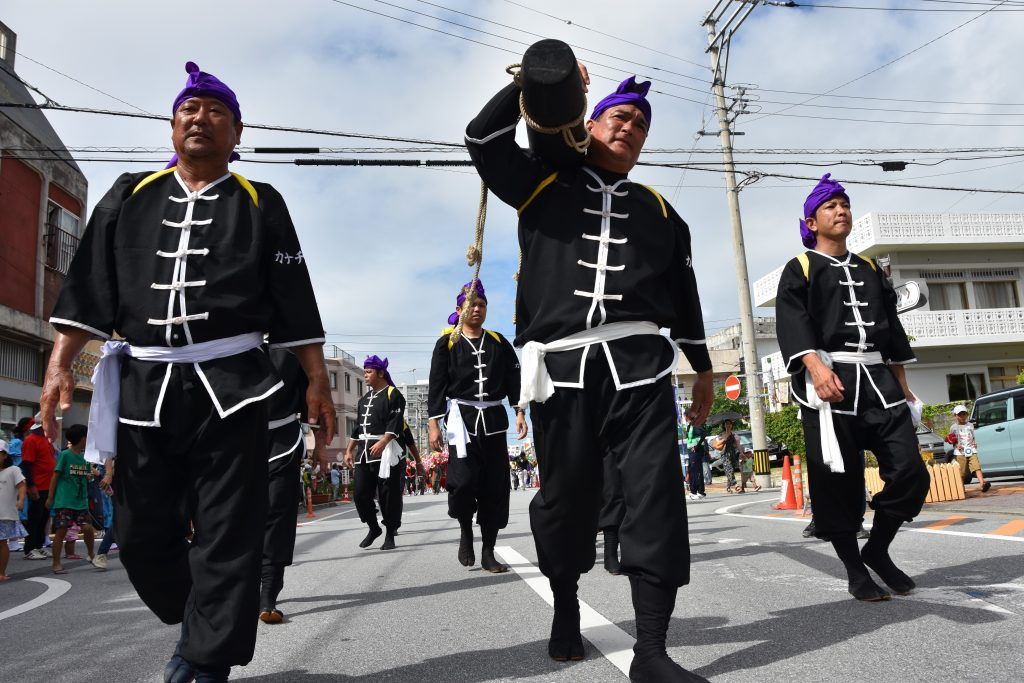 後ろからするりと持ち手を差し込んでいれかわるという、早業です。那覇や糸満とは違う「与那原持ち」も特徴の一つです。