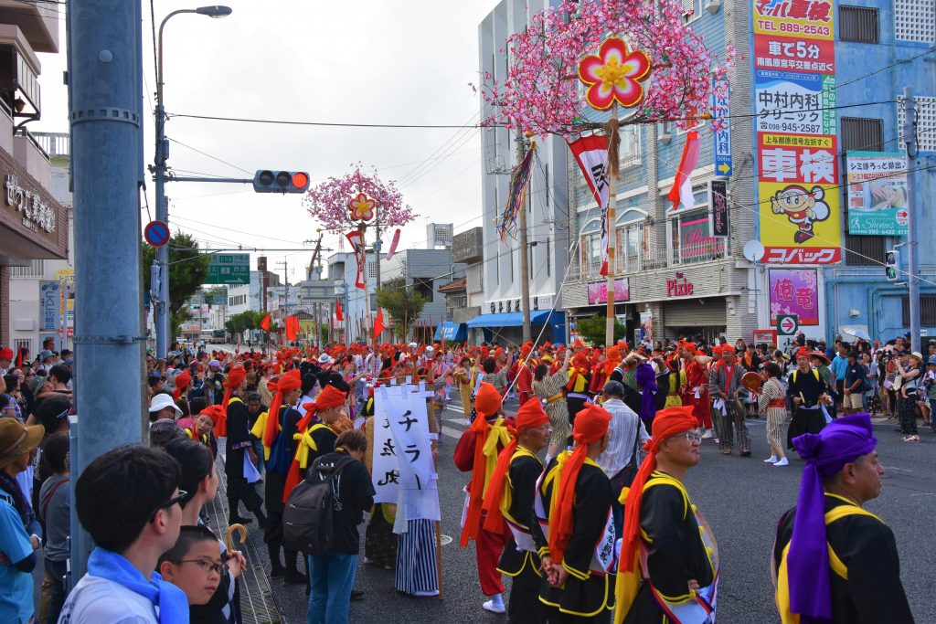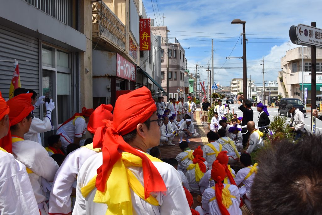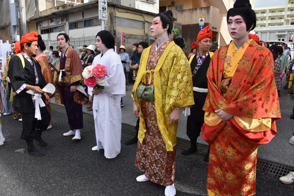 このガーエーで、初めて姿を現すのが琉球の歴史上の人物に扮した「支度」のみなさんです。第37回の支度の演目は、与那原町制70周年を記念して地名のついた「よなばるの浜」と「奥山の牡丹」。