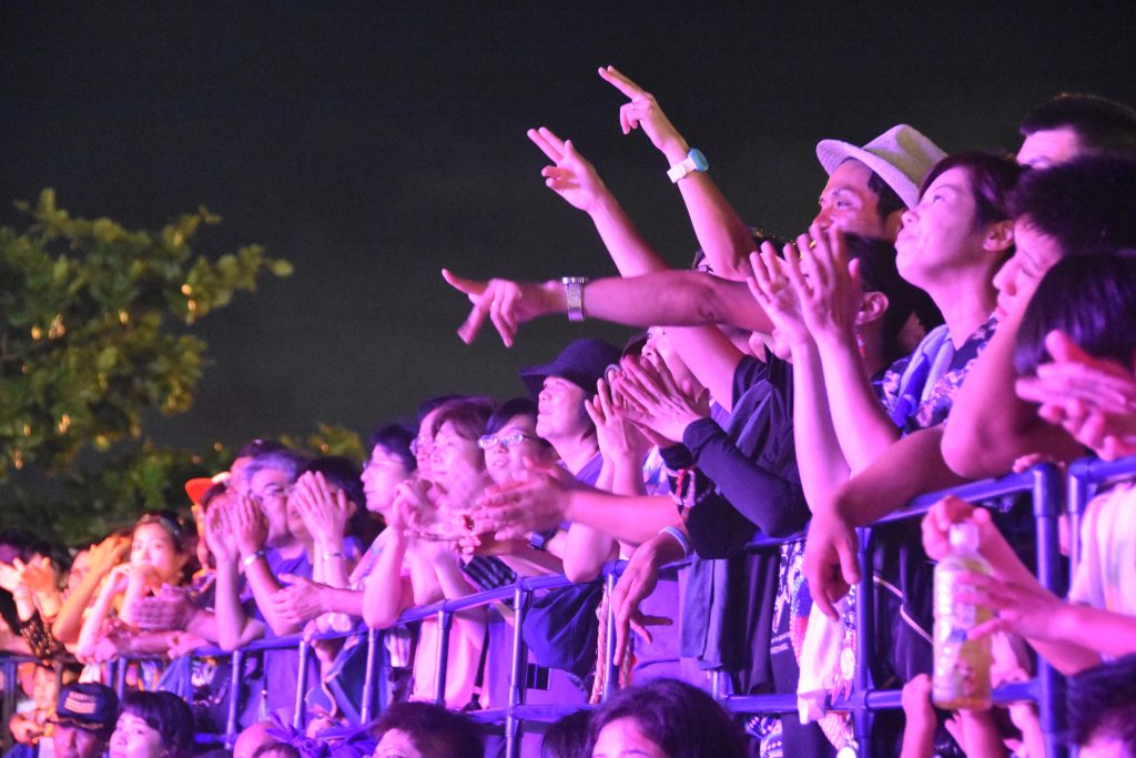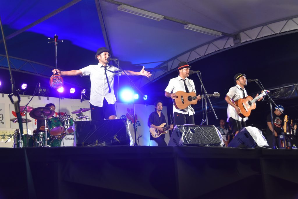大綱曳のあとは、場所をまつり会場に移動し、「きいやま商店」と「かりゆし58」のライブ~~(^^♪