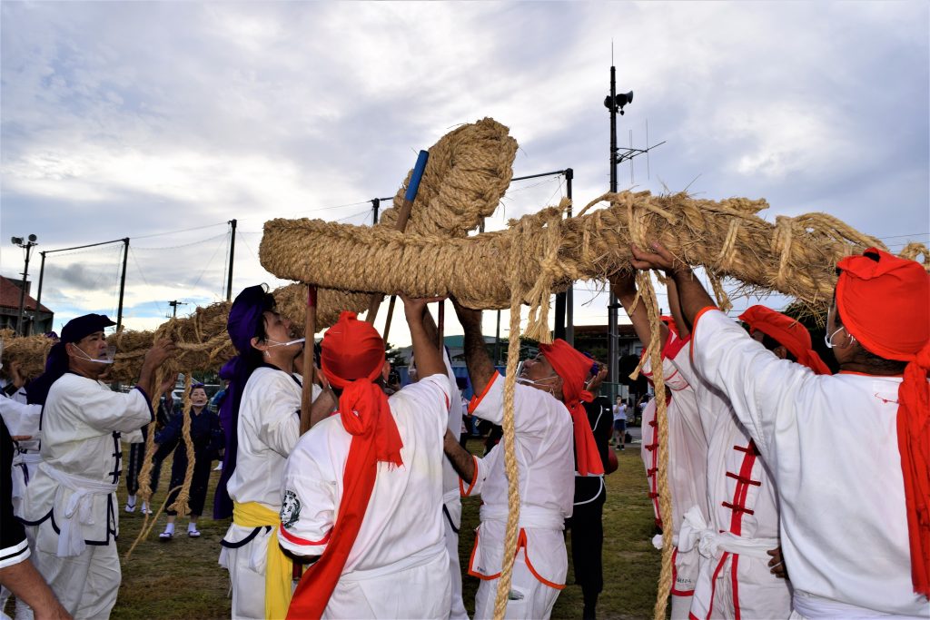 今年の「与那原大綱曳まつり」は新型コロナウイルスの影響で、残念ながら中止となりましたが、9月20日(日)に関係者にて規模を大幅に縮小し、五穀豊穣とコロナウイルスの収束を祈願し「神事の大綱曳」を行いました。綱も20メートルと例年より短いサイズでしたが、「カナチ棒」で東西の綱と綱がつながると約2分強の熱戦が繰り広げられました。結果、東が勝利しましたが、東西共、440年以上の歴史と伝統の大綱曳が規模縮小でしたが、神事として開催できた喜びを分かち合っていました。来年は、多くの人が参加できる「与那原大綱曳まつり」にて皆様とお会いできることを楽しみにしたいと思います。