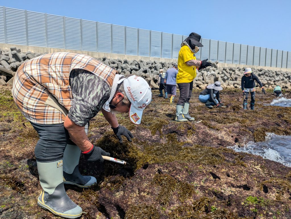 関係者の皆さんで海の安全を祈願して「うがみ」を行ったあと、いよいよ収穫がスタートします。