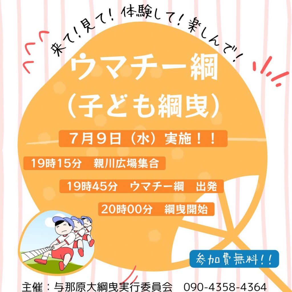 6月ウマチーの夜には大綱曳前哨、子ども綱曳(ウマチー綱小)が行われます!申し込みは不要!