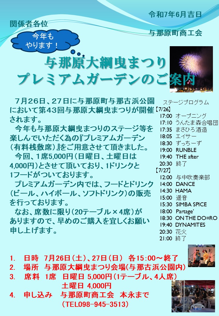 与那原大綱曳まつりプレミアムガーデンのご案内