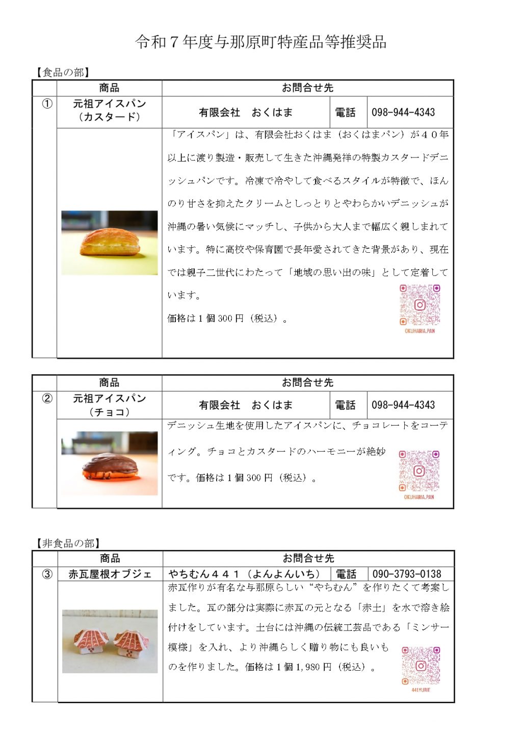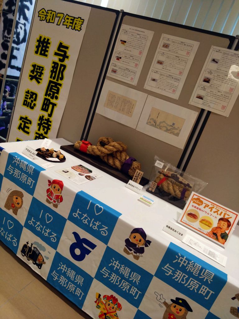 現在、与那原町役場ロビーにて「令和7年度 与那原町特産品認定商品展示会」を開催しています。