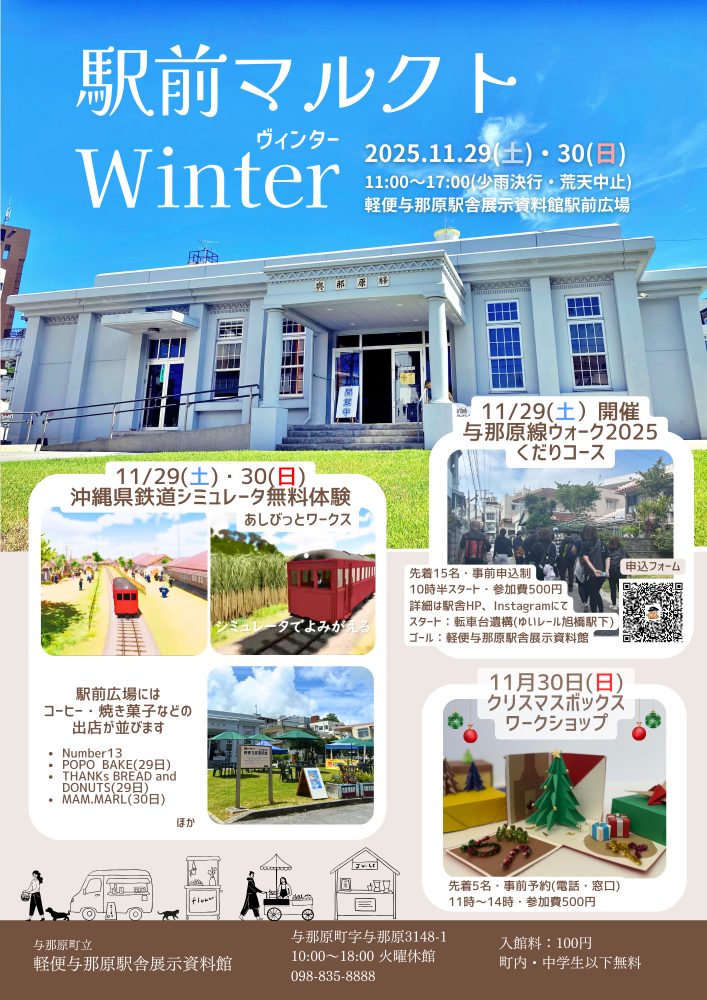 軽便与那原駅舎展示資料館の駅前広場にて、「駅前マルクト Winter」を開催します。